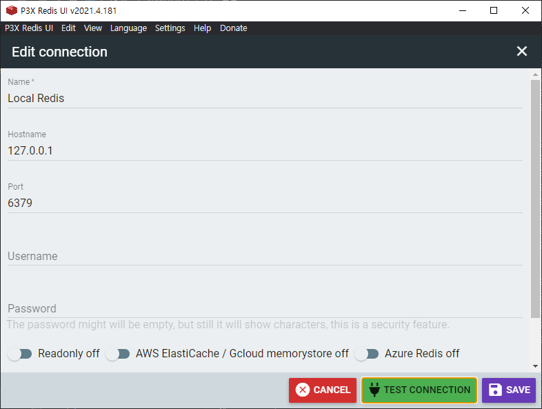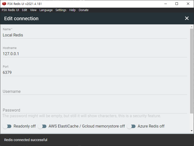 Test Connection 후 아래에 연결 성공 메세지가 뜨면 연결완료