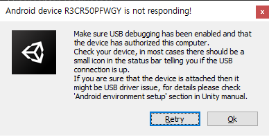 * 위처럼 device 이름이 시리얼 번호로 나오면 일단 먼가 연결이 완전히 되지 않은것으로 판단하면 된다.