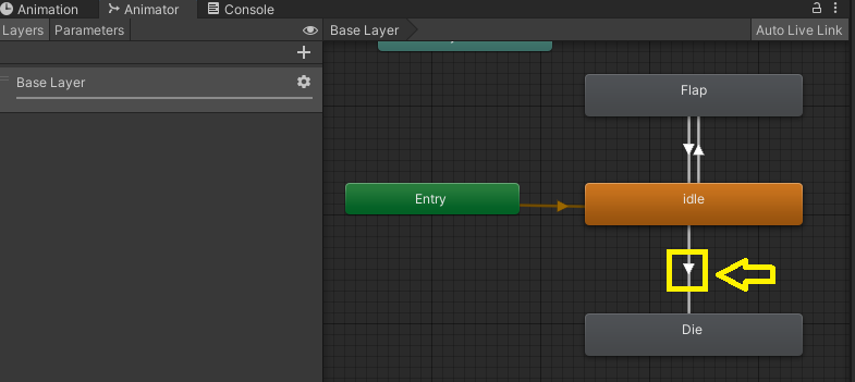 아래 처럼 Animation Controller 를 선택하여 Animator 창을 열고