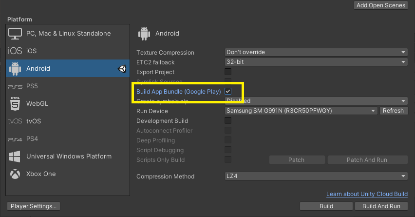 아래처럼 Build App Bundle 를 체크하고 Build 하게되면 aab 파일이 만들어 진다.