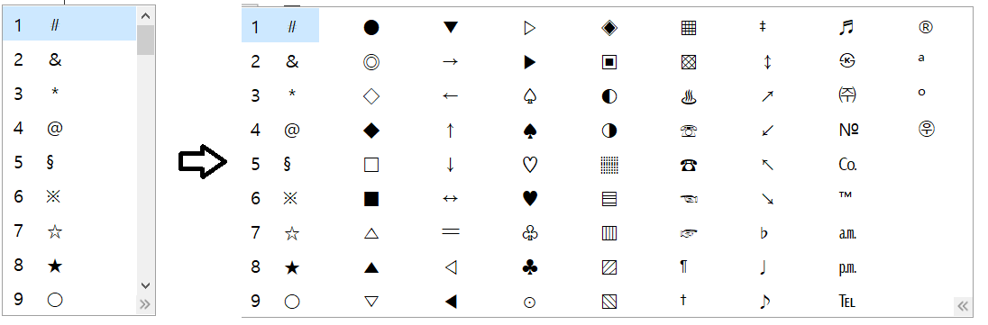 특수문자 작성시 한글자음 + 한자 하면 특수문자가 나오는데 한줄만 나와서 찾기가 힘들었는데 저상태에서 Tab 를 누르면 전체가 한꺼번에 보여진다. (몰랐는데 한줄일때도 아래 >> 표시를 누르면 펼쳐진다.)