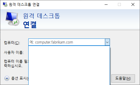컴퓨터\HKEY_CURRENT_USER\SOFTWARE\Microsoft\Terminal Server Client\Default 으로 이동