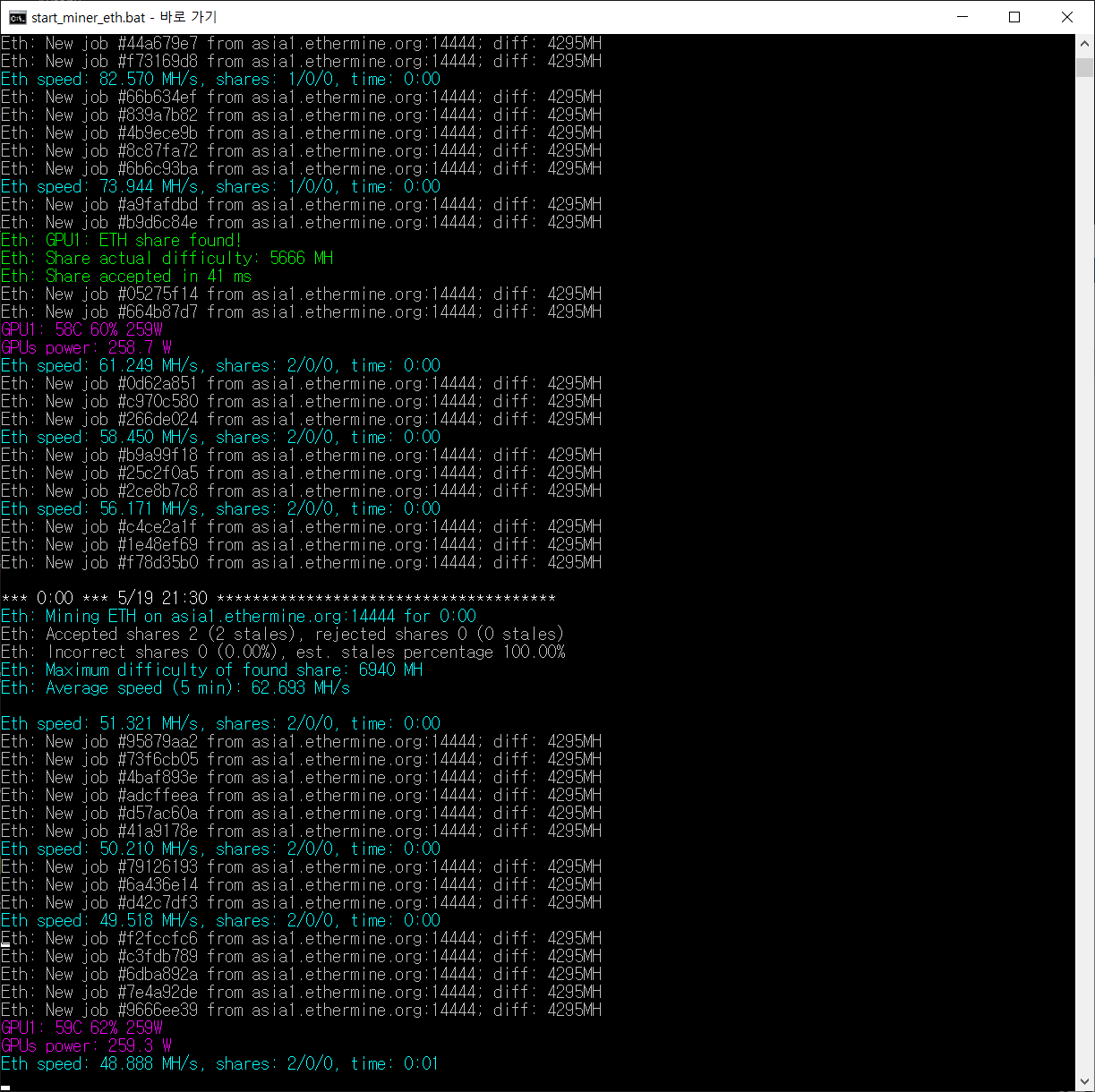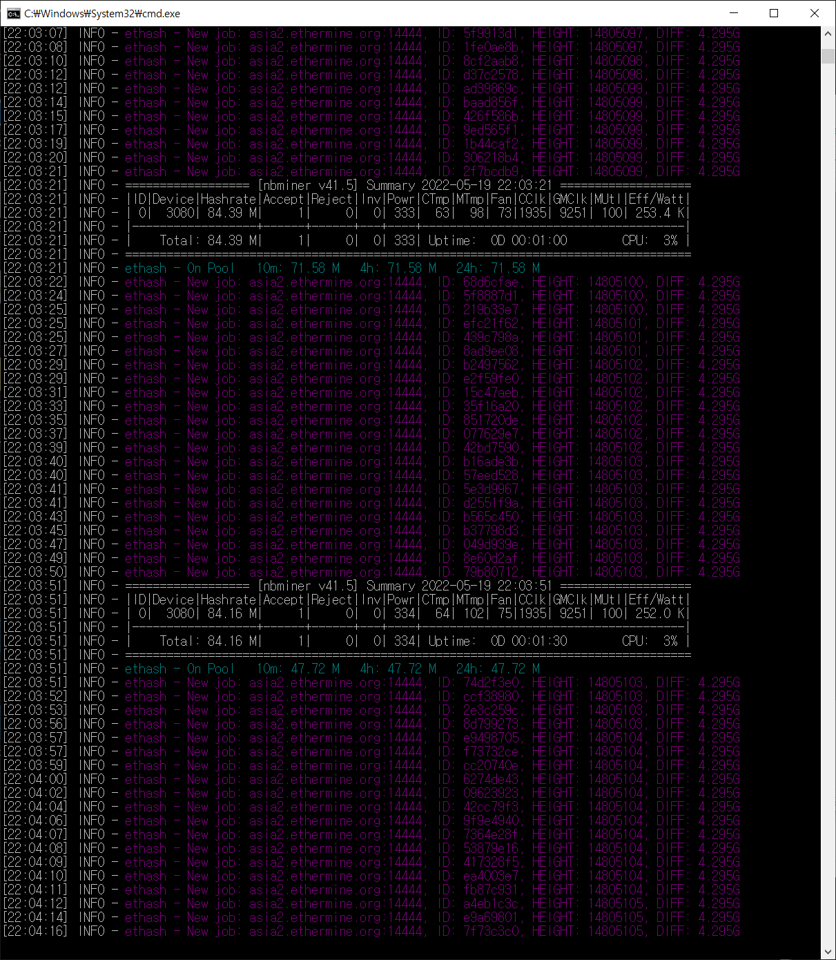 실행한 결과 hash가 84 정도를 계속 유지한다. 해쉬가 낮은데 현재 아무것도 조정하지 않은 상황이다