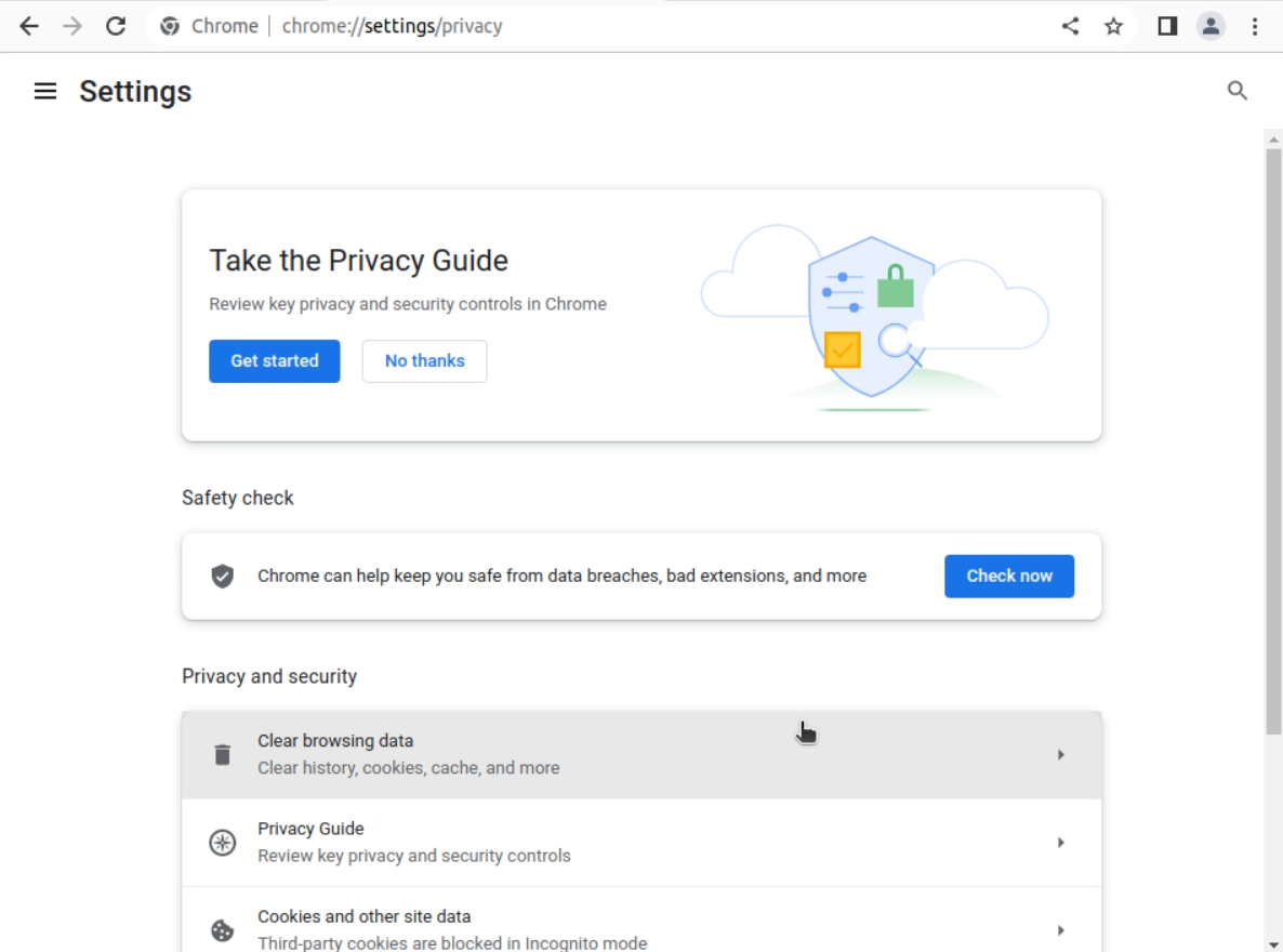 햄버그 메뉴를 클릭하여 Privacy and security 선택