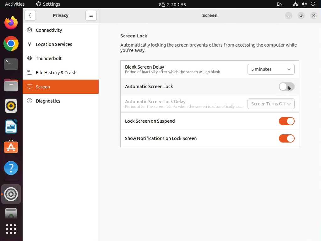 3. Screen 에서 Automatic Screen Lock 해제