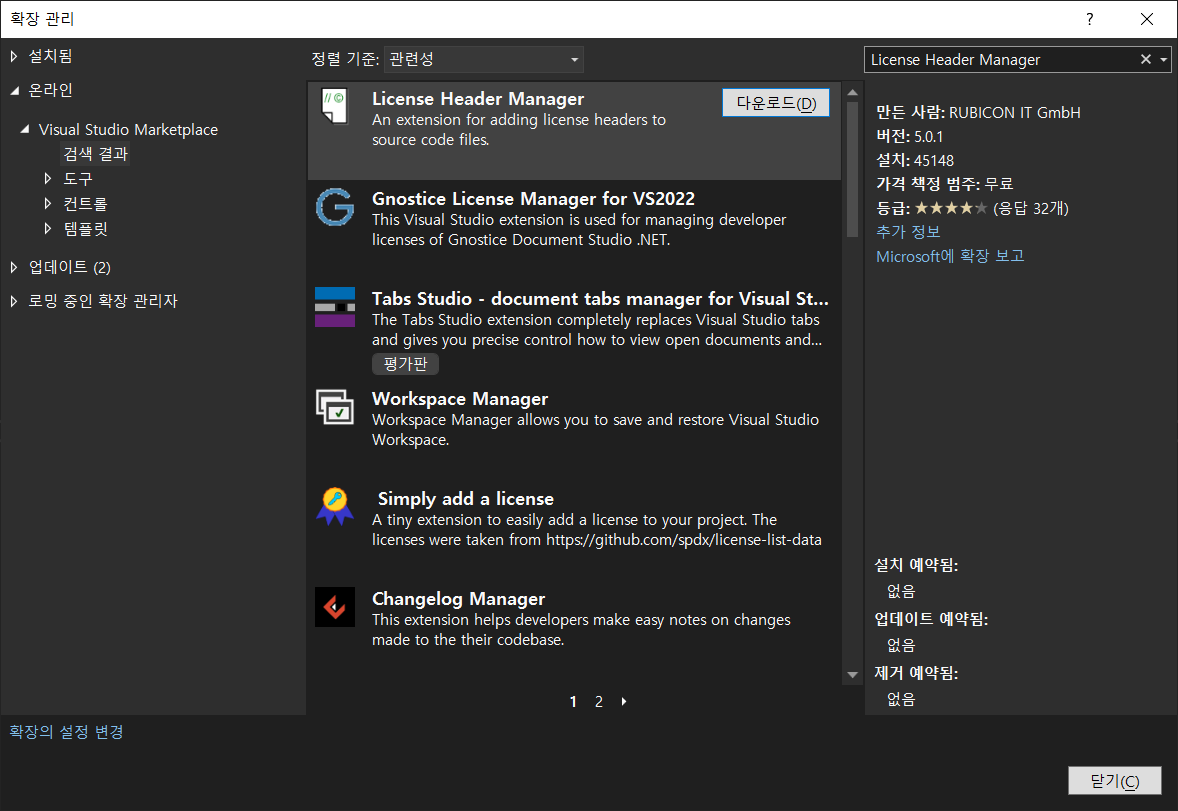 각 파일의 헤더에 문구를 넣고자 할때 사용하는 확장으로 보안문구나 라이센스 관련 문구를 넣을때 유용하게 쓰인다.