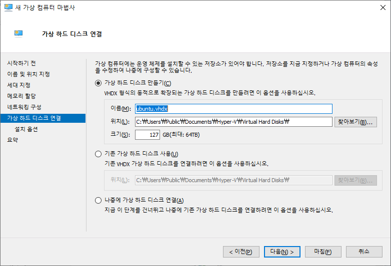 하드디스크 크기 및 경로 변경하고 다음