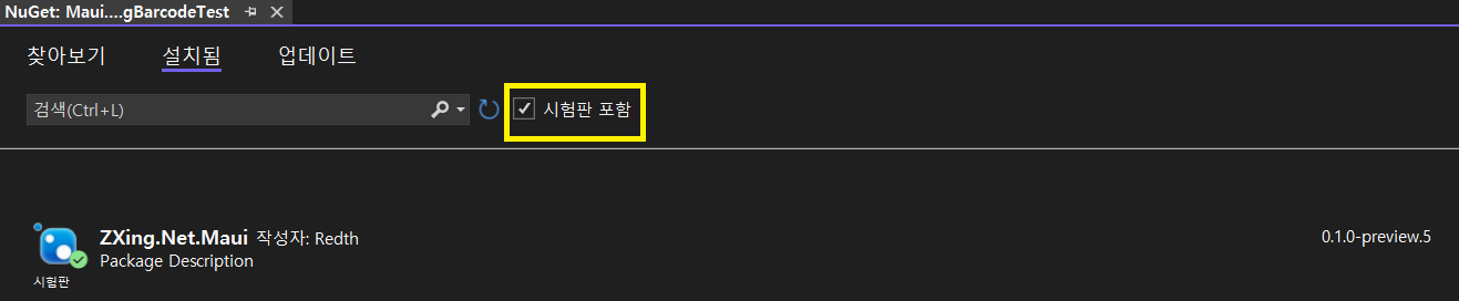 1. "ZXing.Net.Maui" Nuget 설치