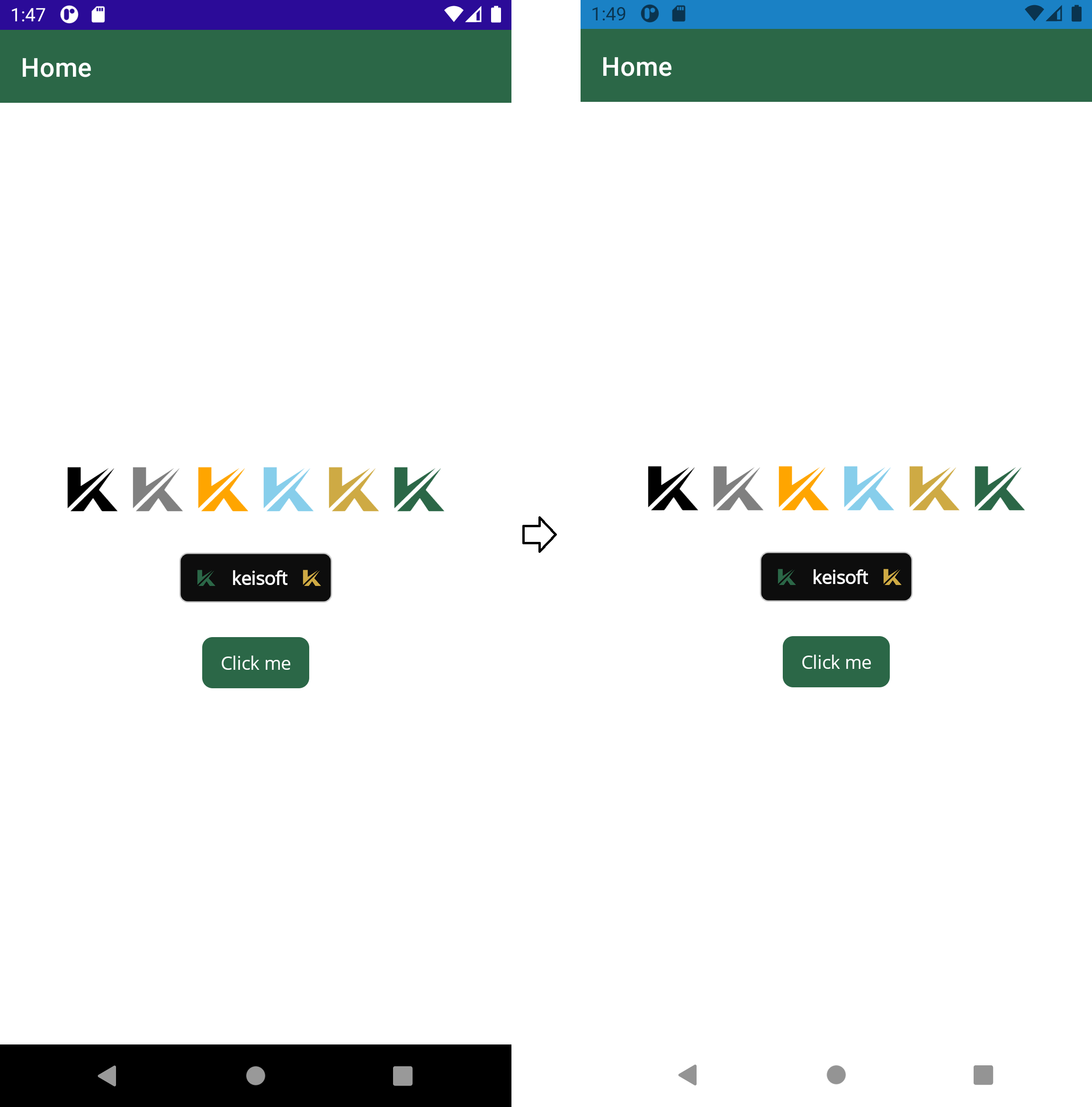 적용전 => 적용후 (상/하단의 Bar 색상이 변경됨)