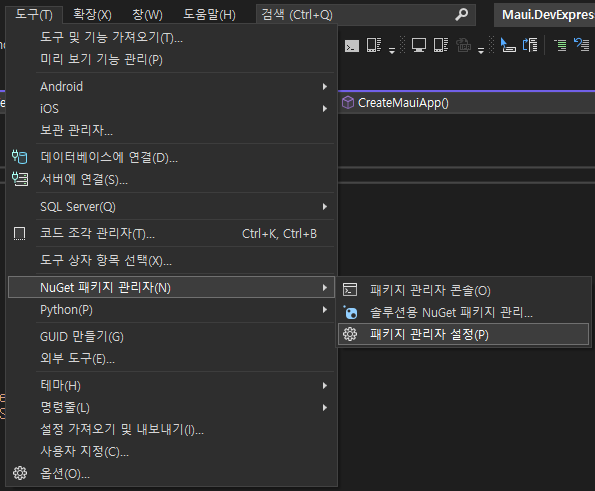 MauiProgram.cs 에 builder.UseDevExpress() 를 추가합니다.