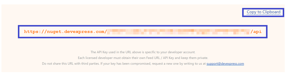 위 링크로 들어가 Your DevExpress NuGet Feed URL 아래에 있는 링크를 복사합니다.