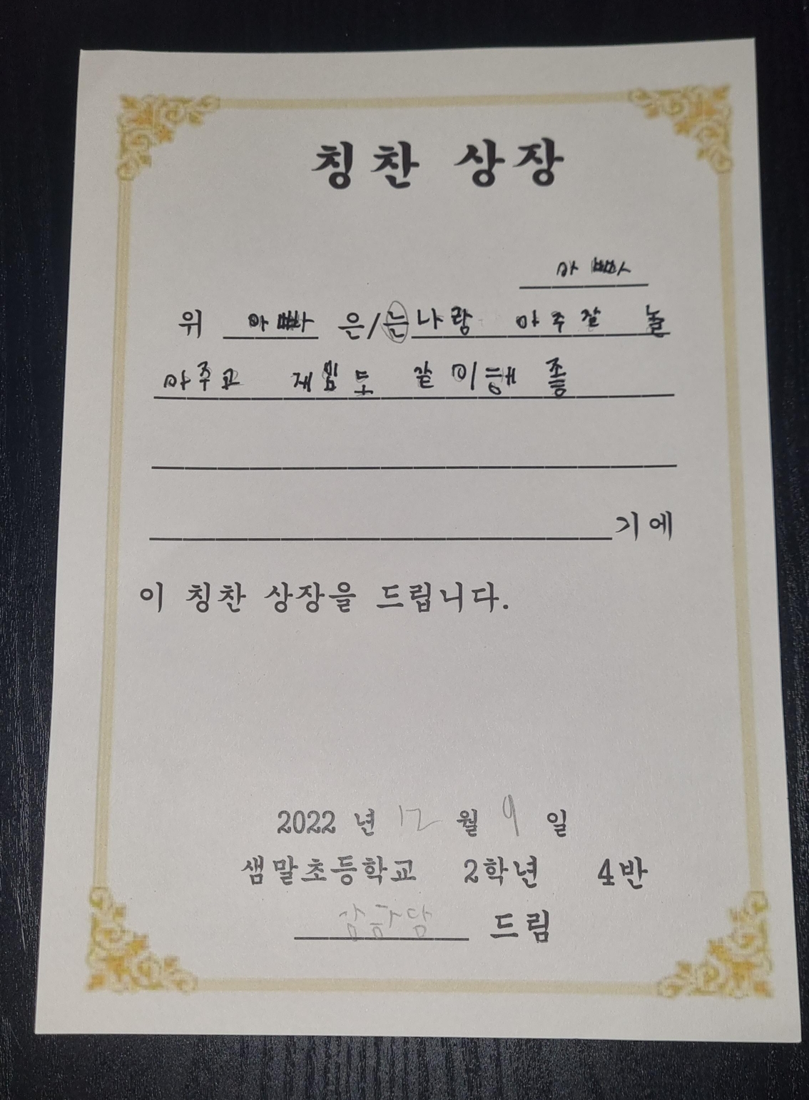 아들이 내게준 상장ㅋ