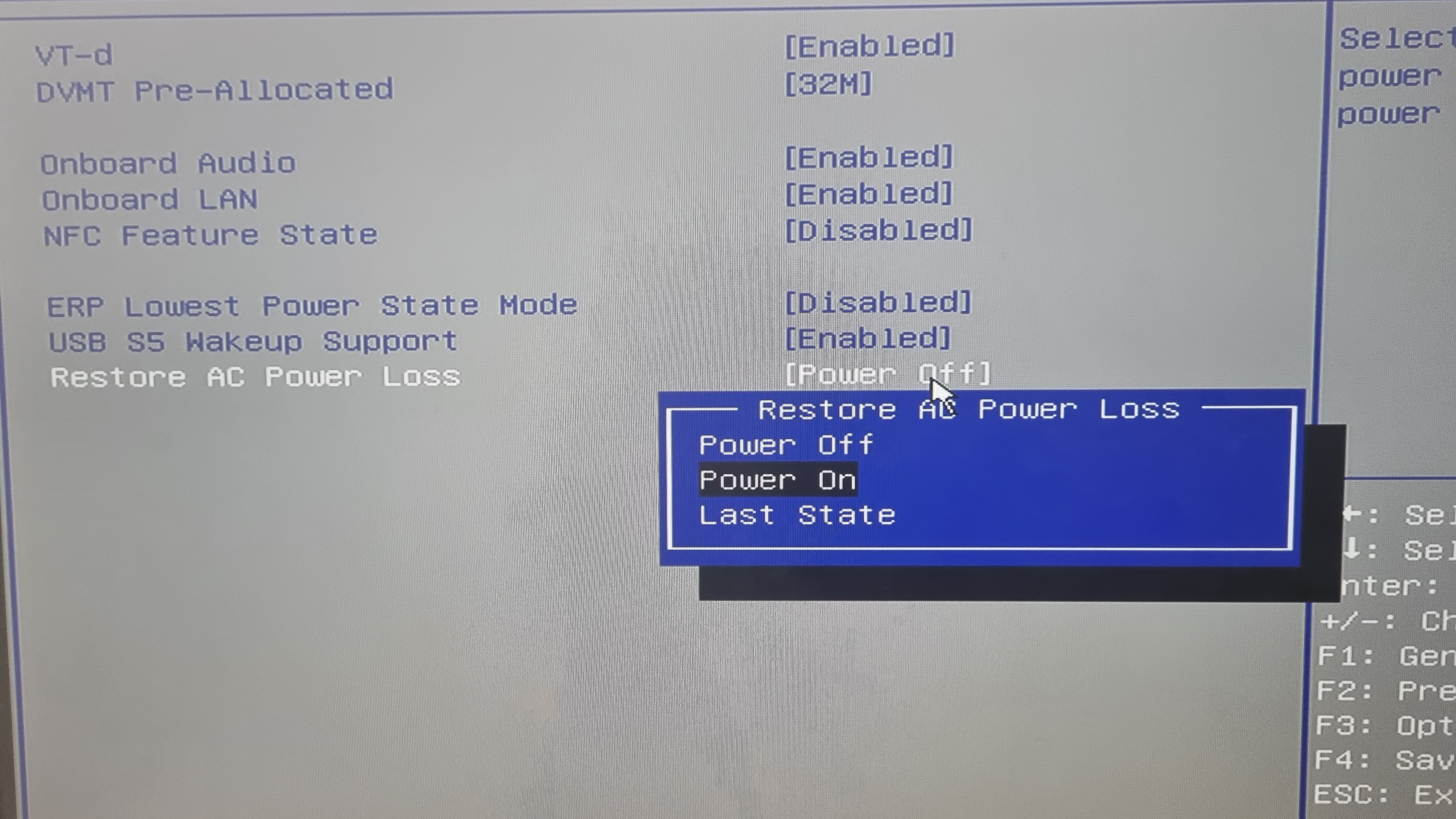 BIOS로 진입해 Restore On AC/Power Loss 항목을 Power On 으로 해주게되면