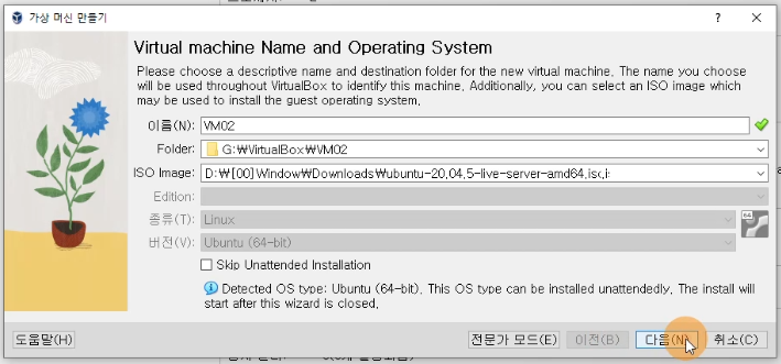 3. virtual box 실행하여 가상 머신 만들기 를 선택합니다.