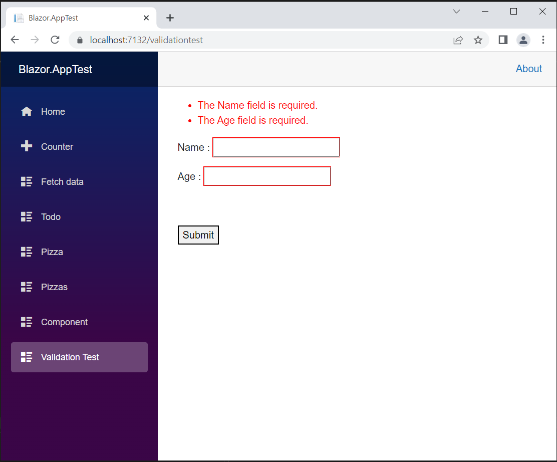 https://github.com/kei-soft/Blazor.AppTest/blob/master/Blazor.AppTest/Pages/ValidationTest.razor
