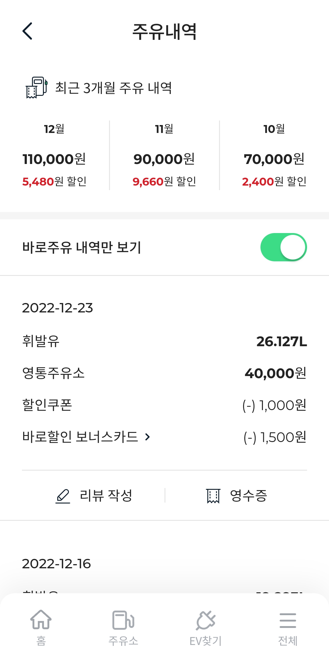 결제 시 번거롭지 않고 앱으로 주유 시 기본할인이 되고 이벤트성으로 쿠폰을 주는데