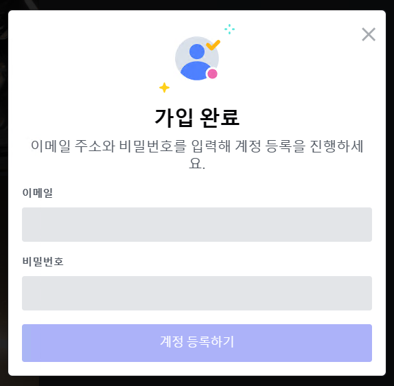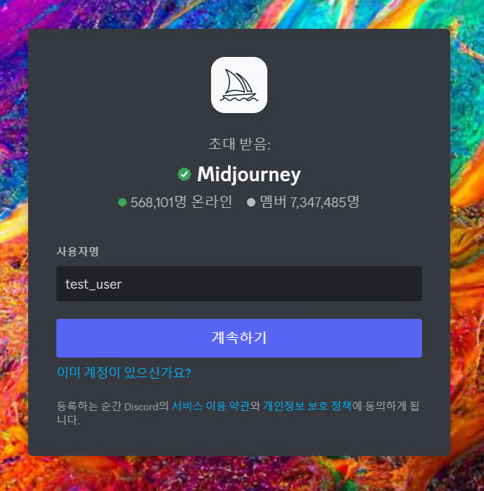 아래와 같이 떴을때 계정을 입력하여 계정을 등록하면 디스코드 가입처리가 되고