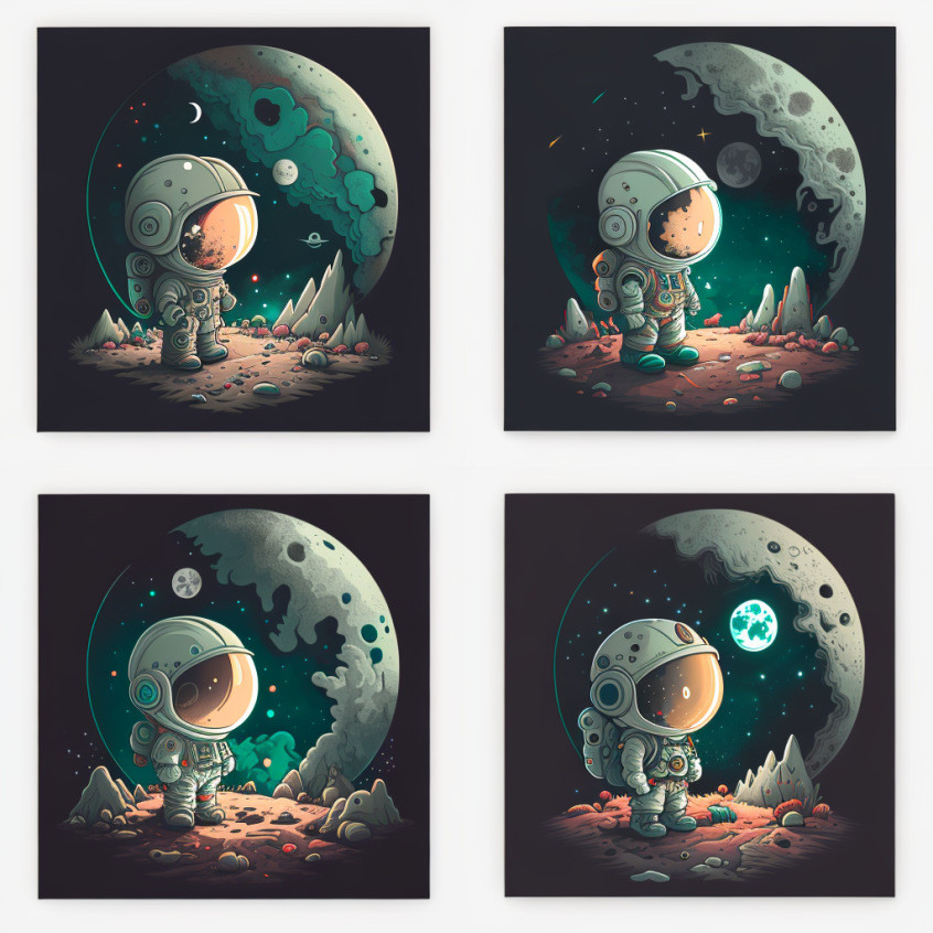 위 결과에서 V1 버튼을 선택하면 첫 번째 이미지를 아래 4가지 버전으로 이미지를 만듭니다.