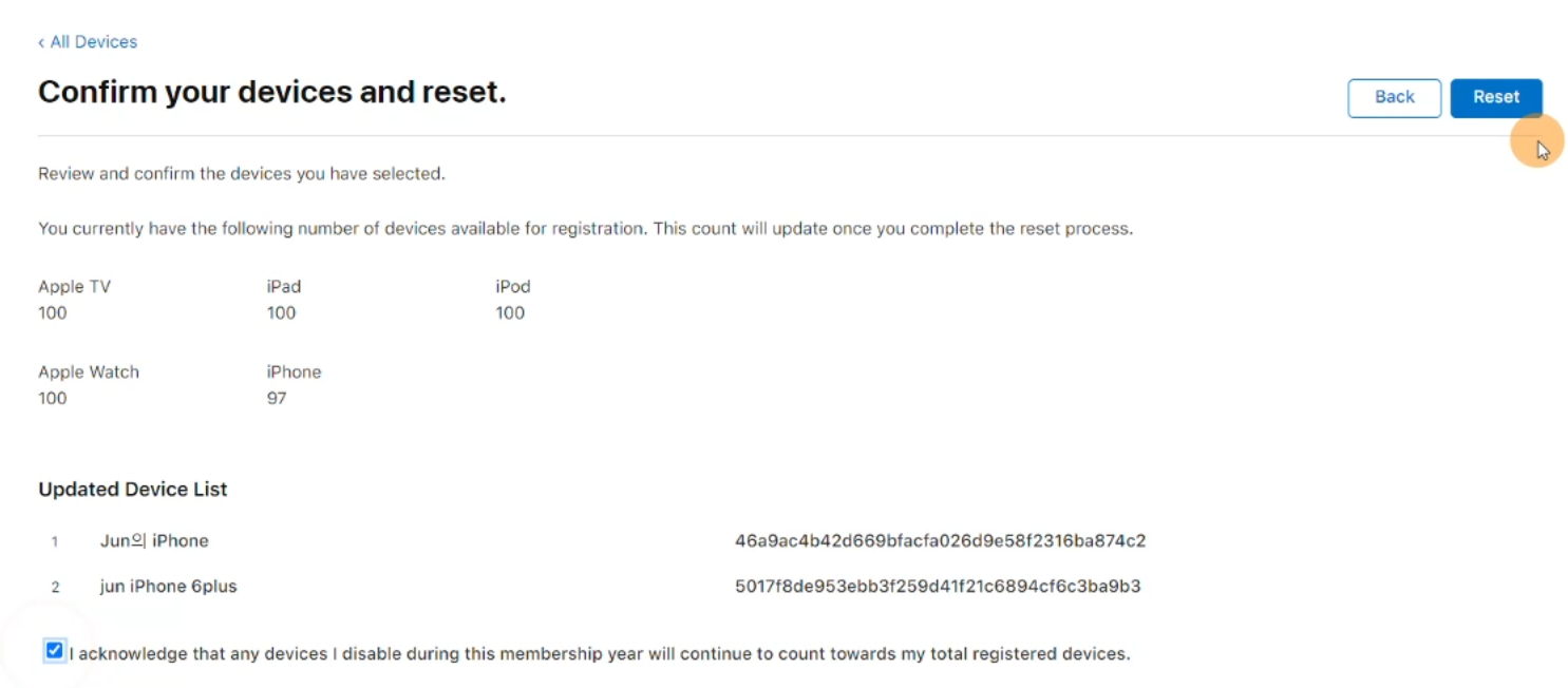 무슨 문제인가 확인해 보니 개발자 계정을 갱신한 후 기기목록도 갱신해야하는데 그러질 못해서