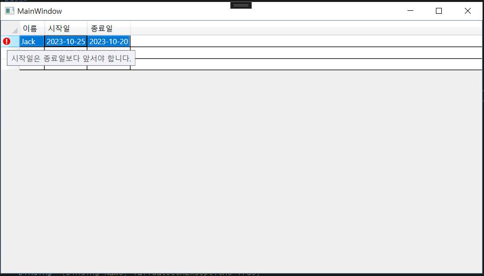 ValidationRule 을 이용하여 그리드 항목의 날짜 데이터가