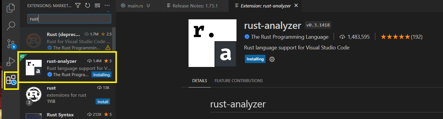 3. Visual Studio Code 에서 rust-analyzer 를 설치합니다.