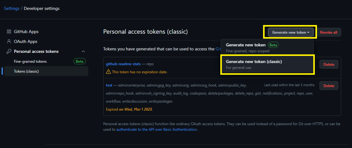 https://github.com/settings/tokens