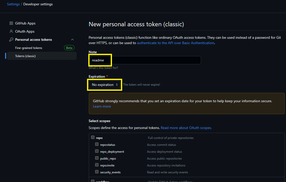3. Personal Access Token 생성
