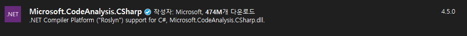1. Microsoft.CodeAnalysis.CSharp 패키지를 설치합니다.