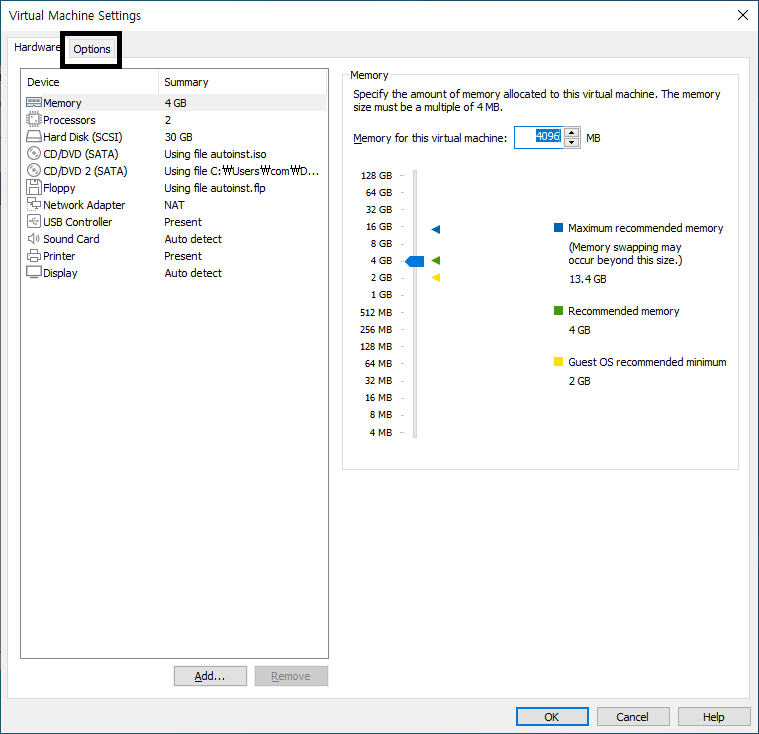 option 탭을 선택합니다.