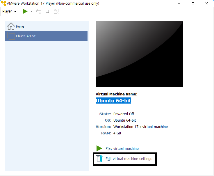 Edit virtual machine settings 클릭합니다.