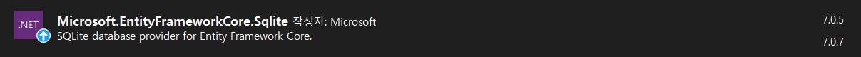 1. 'Microsoft.EntityFrameworkCore.Sqlite' Nuget Package 를 설치합니다.