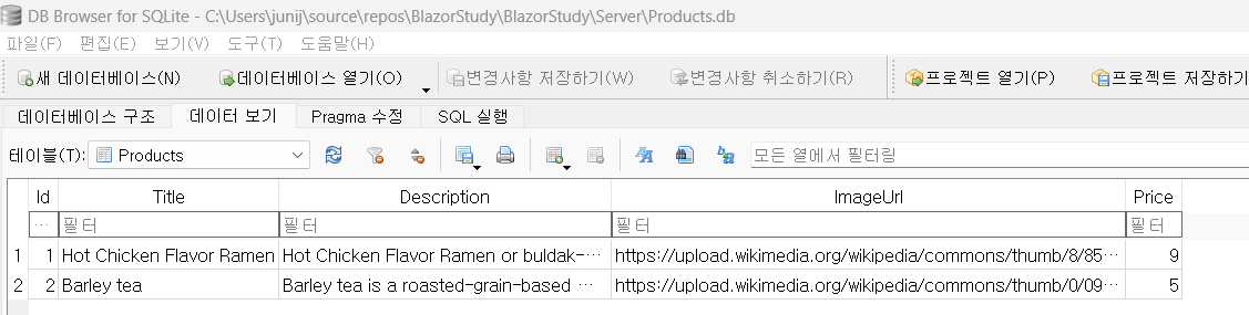 아래는 실제 데이터베이스에 테이블과 데이터를 생성하는 명령입니다.
