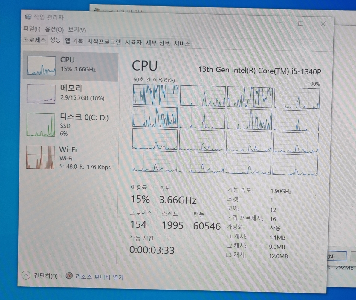 i5 13세대라서 코어수가 많아서 그런지 빠릿빠릿합니다