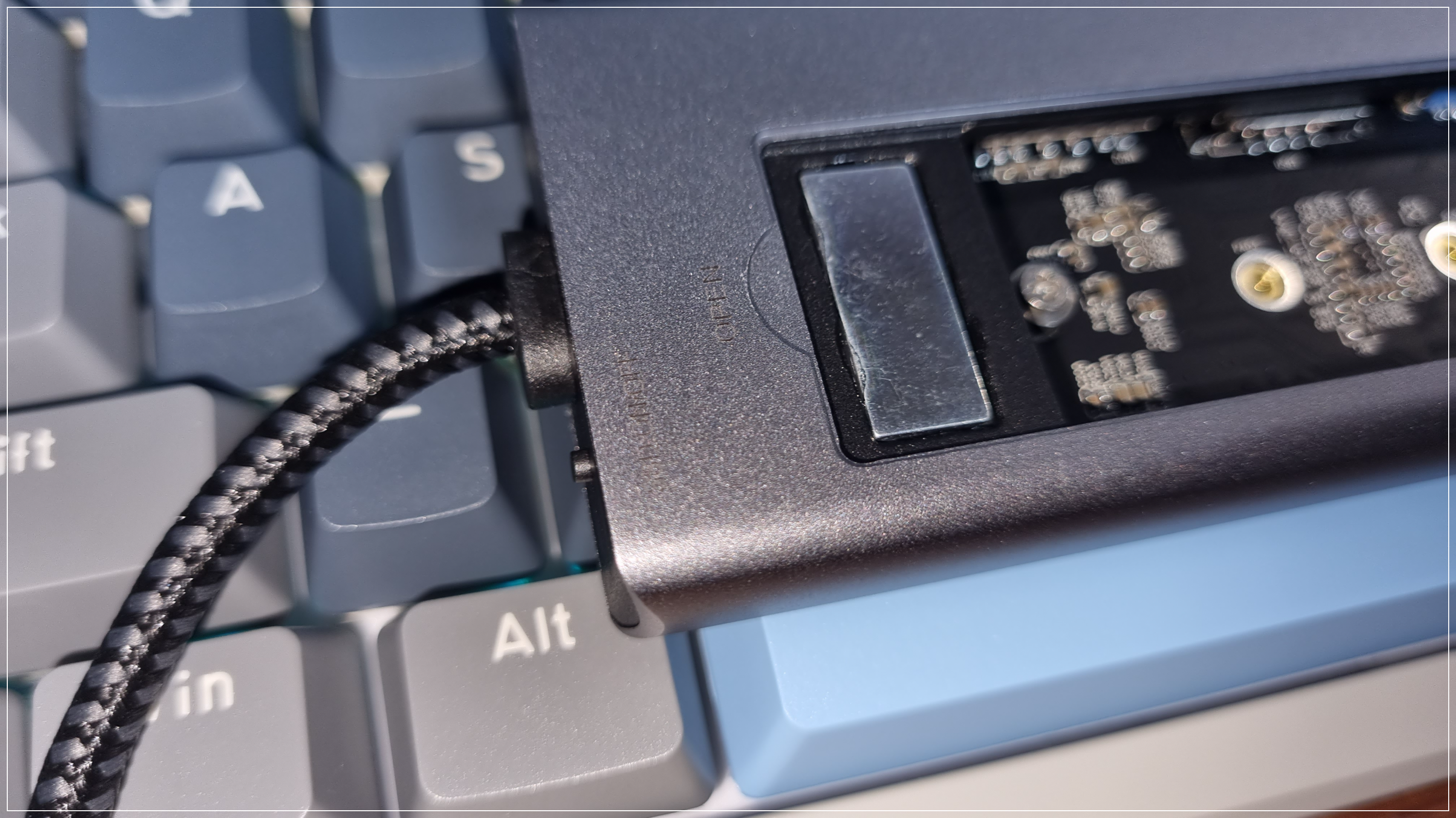 위 사진을 보면 왼쪽에 작은 버튼이 하나있는데 ssd 전원 버튼이며 외장하드기능을 끄고 켤수있게 되있습니다