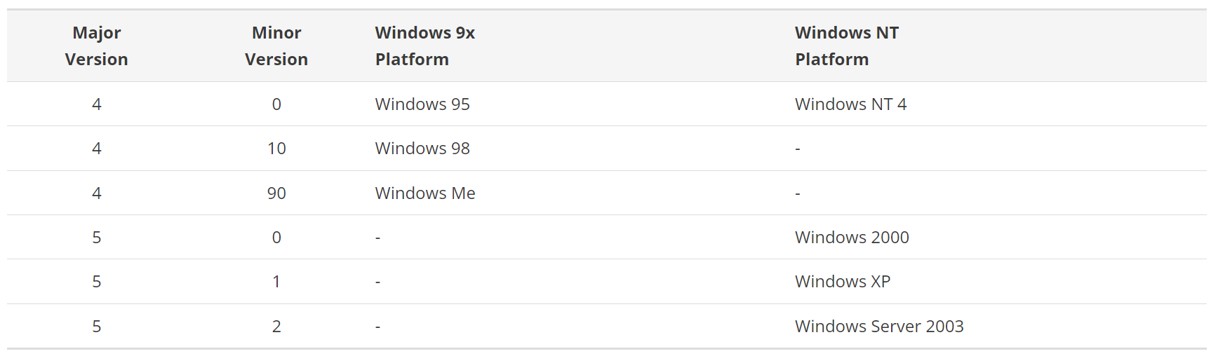 위처럼 OS 종류와 버전정보를 가져올 수 있으며 각 정보는 아래 정보를 참고하면 됩니다.