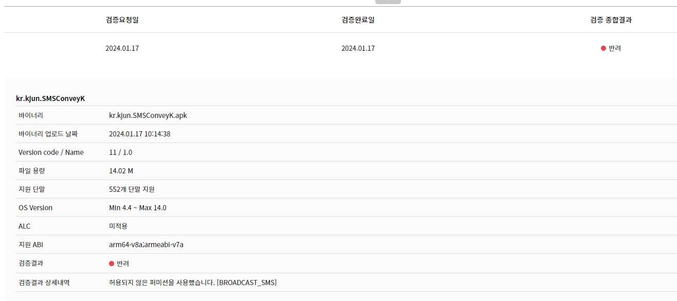 문자 관련해서는 민감하게 처리해서 앱 배포가 안되고 있습니다.