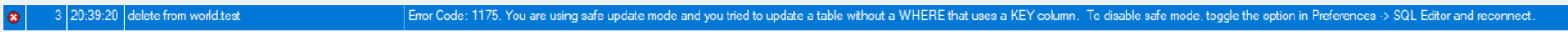| Error Code: 1175. You are using safe update mode and you tried to update a table without a WHERE that uses a KEY column. To disable safe mode, toggle the option in Preferences -> SQL Editor and reconnect. |