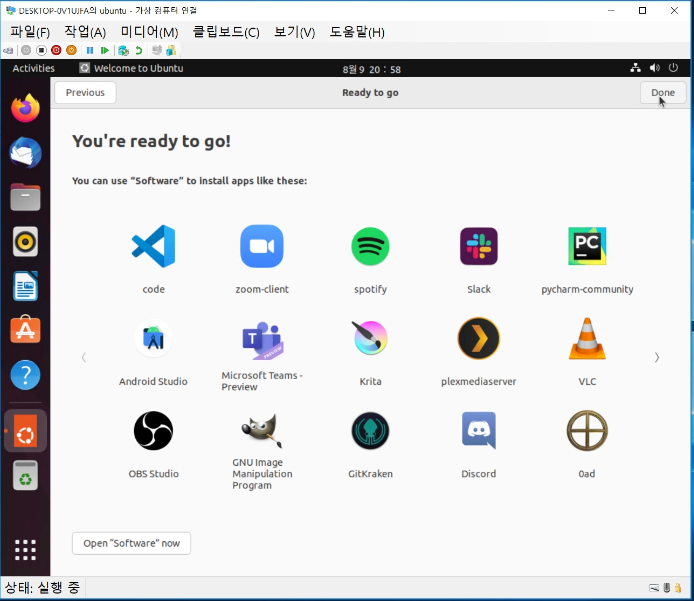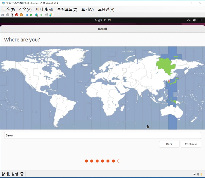 이제 가상 컴퓨터를 더블 클릭하고 시작하여 구동하여 ubuntu 설치를 진행한다.