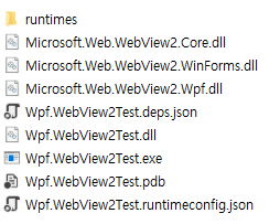 프로그램을 실행하면 MicrosoftEdgeWebview2Setup.exe 파일을 다운받고 실행되면서 Wpf.WebView2Test.exe.WebView2 폴더가 생성된걸 확인 할수 있습니다.