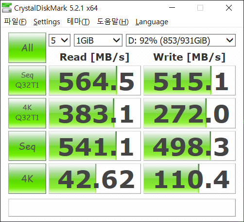 D드라이브 Crucial Mx500 1tb (92%)