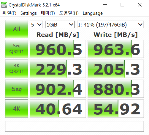 디스크 읽기/쓰기 속도 (980PRO,MX500,860EVO,970PRO)