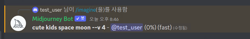채팅방에서 /imgine를 치고 tab을 누르면 아래처럼 명령을 입력할 수 있는 창이 나타납니다.