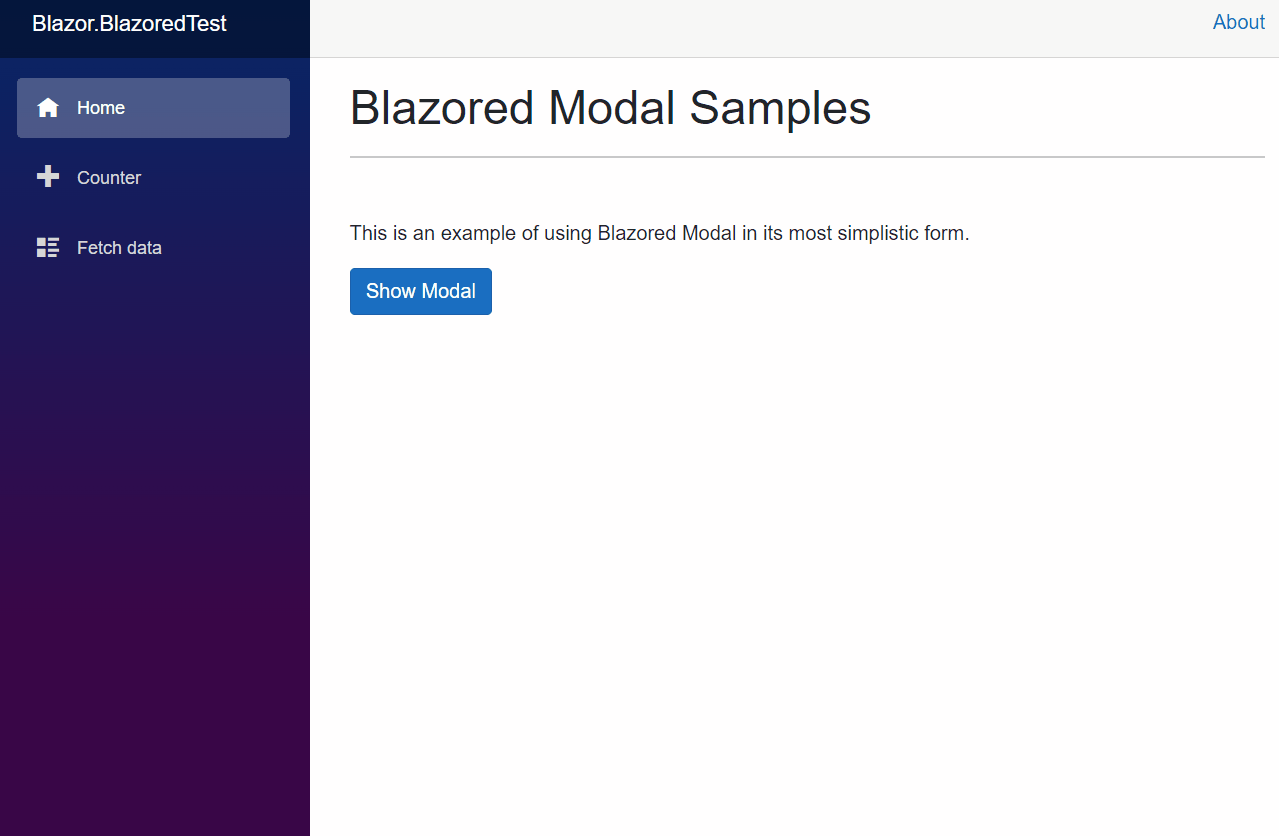 This is an example of using Blazored Modal in its most simplistic form.