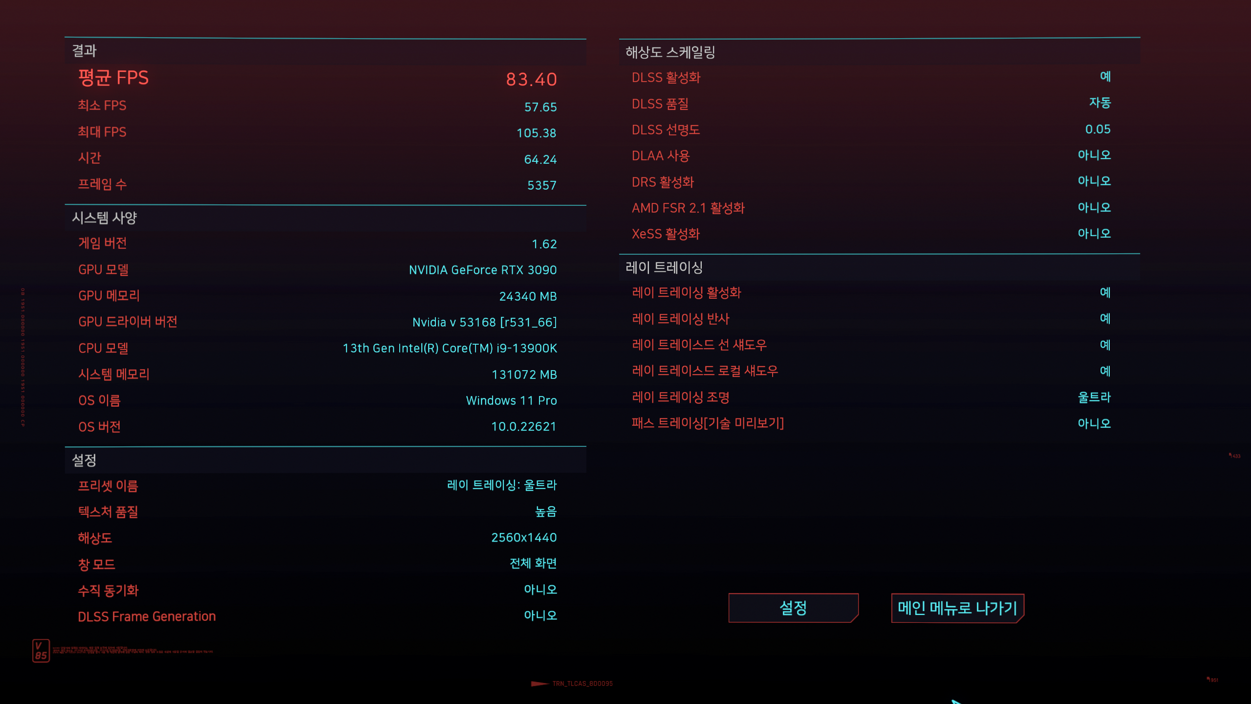Cyberpunk 2077 벤치마크 - 3090